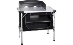 Die Außenhaut ist innen beschichtet. Besonders robuste, langlebige Konstruktion, die auch mehrmaligen Auf- und Abbau unbeschadet übersteht. Die Montage ist einfach und schnell. Die innenliegende Kunststoffspüle kann durch die Alurollplatte abgedeckt und seitlich herausgenommen werden. Mit höhenverstellbaren Füßen um Bodenunebenheiten ausgleichen zu können. Lieferung inklusive Windschutz und Tragetasche.