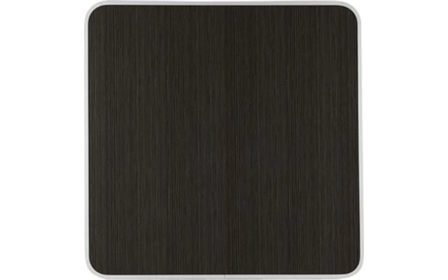 Stabile MDF Platte mit Alu-Umrandung. Einfach auf den Hocker legen – fertig ist der Tisch.
