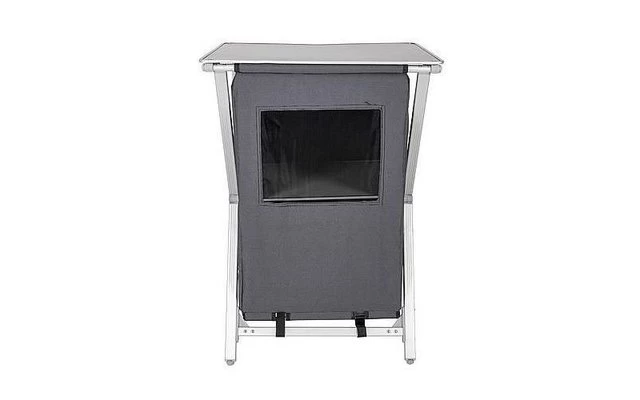 Ein sehr kompakter Koch-/Lagerschrank. Einfacher Aufbau durch das „easy to fold“-System. Ausgestattet mit einem luxuriösen 2-farbigen 600 Denier Polyesterbezug, der ein praktisches Regal und ein Lüftungsfenster enthält. Die verstellbaren Beine sind individuell einstellbar, so dass der Schrank auf jeder Oberfläche stabil steht.