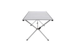 Aluminiumtisch mit Rollplatte und speziellem, einfach zu montierendem Klapprahmen. Rolltischplatte mit silber eloxierten Lamellen (Gapless-System). Sehr stabiler Rahmen aus Aluminium-Vierkantrohren und zentraler Stabilisierungsstange. Mit praktischer Netzablage und Transporttasche (100 % Polyester) mit 2 separaten Fächern.